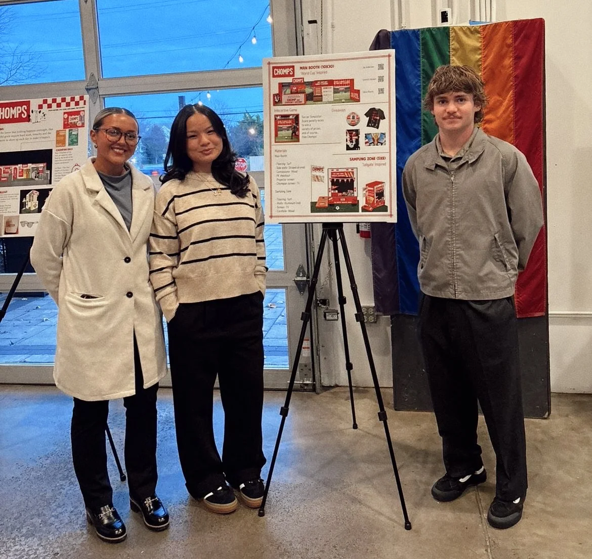 For this project, I collaborated with my Graphic Design Practicum class after being commissioned by the Midwest chapter of the Experiential Design and Producers Association (EDPA) to respond to a fictitious creative brief for Chomps Meat Sticks. We were tasked with designing two trade show booth experiences—a 10x30 main booth and a 5x8 activation sampling zone—for the Natural Products Expo West ‘26. Inspired by the energy of the 2026 FIFA World Cup, our concept focused on creating a bold, sports-driven, immersive brand experience that reflected Chomps’ existing personality while elevating it into a dynamic physical environment.